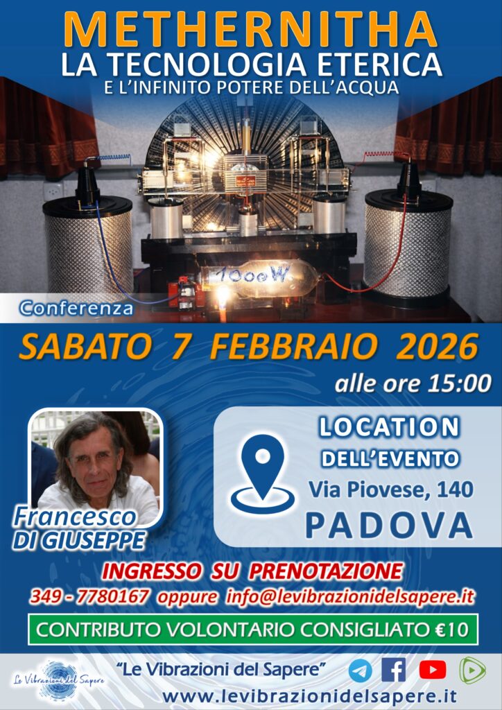La conferenza esplora il tema di Methernitha, una tecnologia eterica poco conosciuta che, secondo diverse ricerche e testimonianze storiche, metterebbe in relazione l’acqua con forme di energia ancora oggi non riconosciute dalla scienza ufficiale.